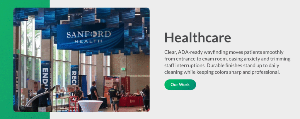 Healthcare Solutions Event Badges & Experience Event Badges & Experience Sign Badgers delivers custom event badges and branded experiences that strengthen community engagement. Wayfinding Wayfinding We provide clear, ADA-compliant wayfinding systems that guide patients and visitors with confidence across healthcare facilities. Dimensional Signage Dimensional Signage Our custom dimensional signage adds depth and professionalism, creating a […]