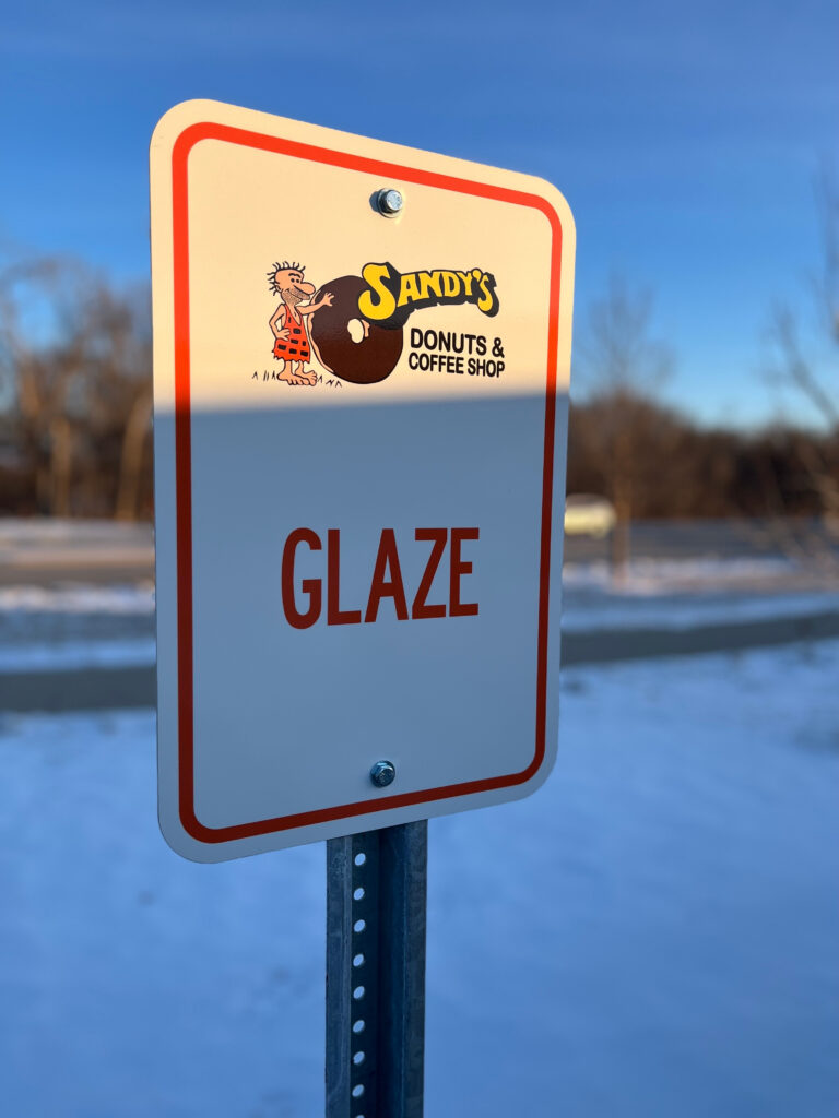 Sign Badgers partnered with Sandy’s Donuts to design, produce, and install a wide range of signage and graphics that reinforce brand identity, support daily operations, and create a cohesive experience across locations.
